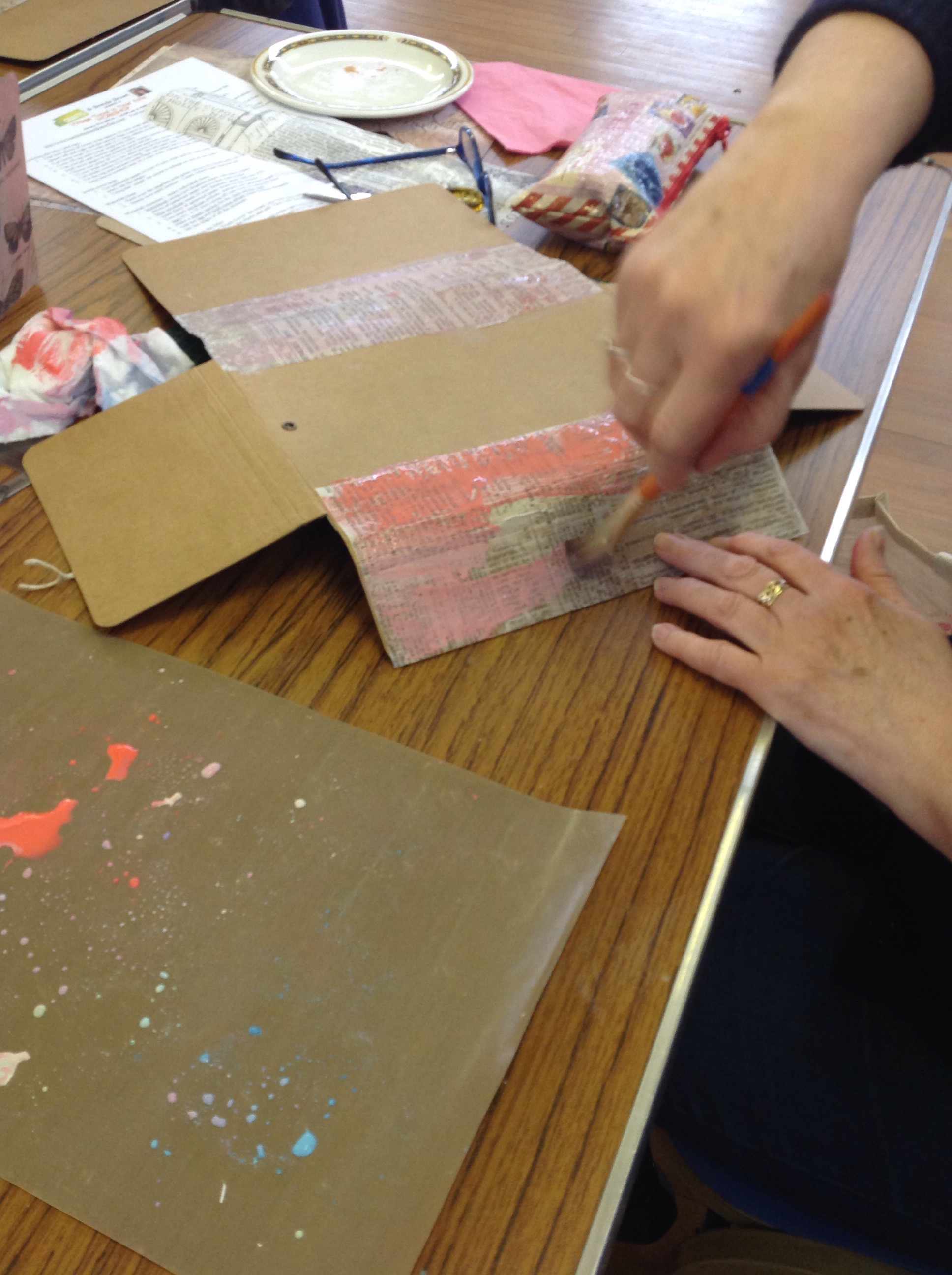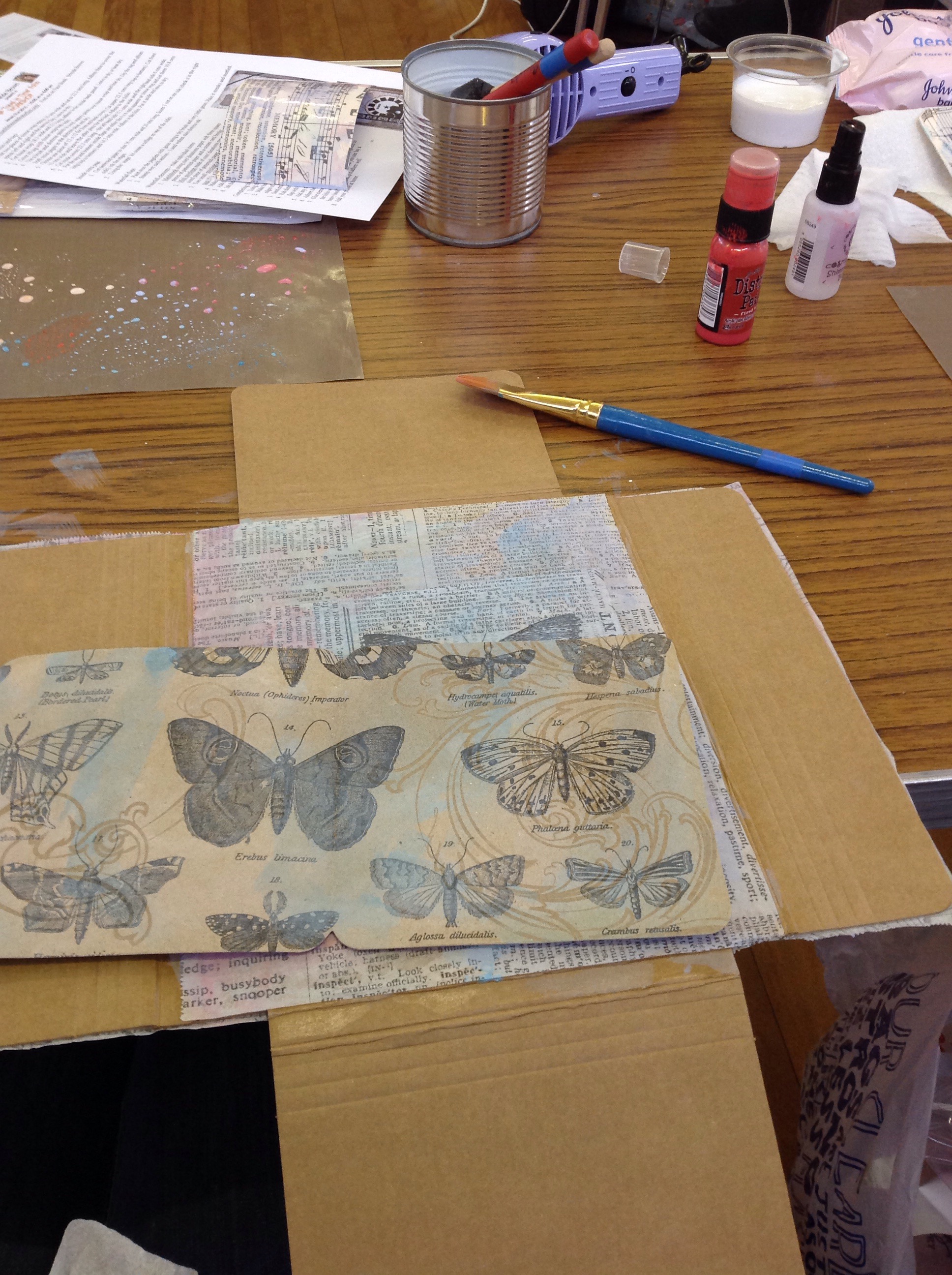We started by covering the folio in the papers and tissue then adding Tim Holtz distress paints.